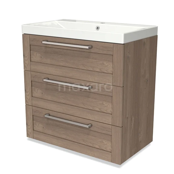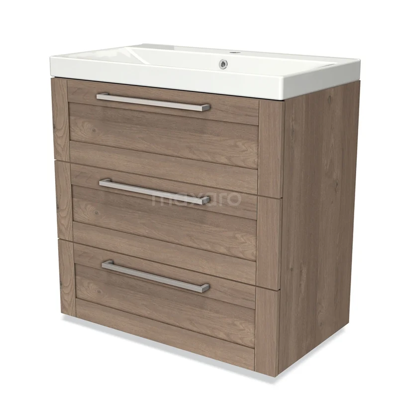 Modulo Waschtische | 80 cm Mittelbraune Eiche Rahmen front Keramik 3 Schubladen