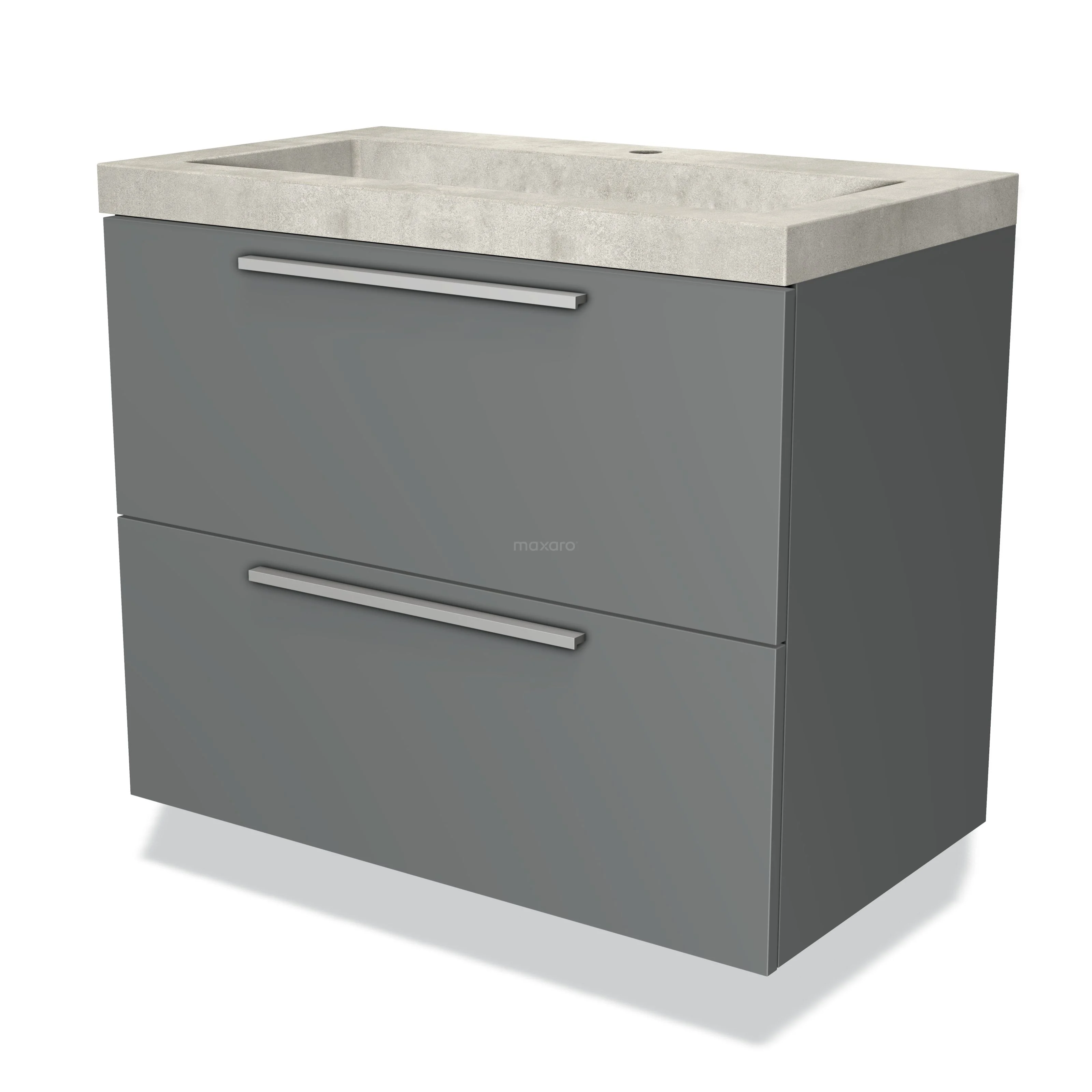 Modulo Waschtische | 80 cm Mittelgrau Flach front Beton 2 übereinanderliegende Schubladen