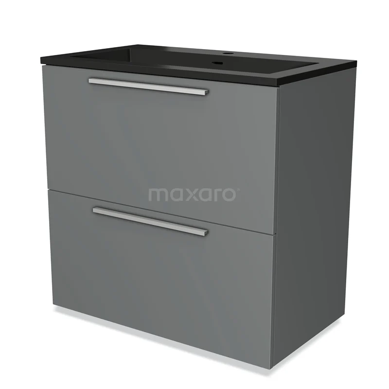 Modulo Waschtische | 80 cm Mittelgrau Flach front Quarz 2 hohe Schubladen übereinanderliegend
