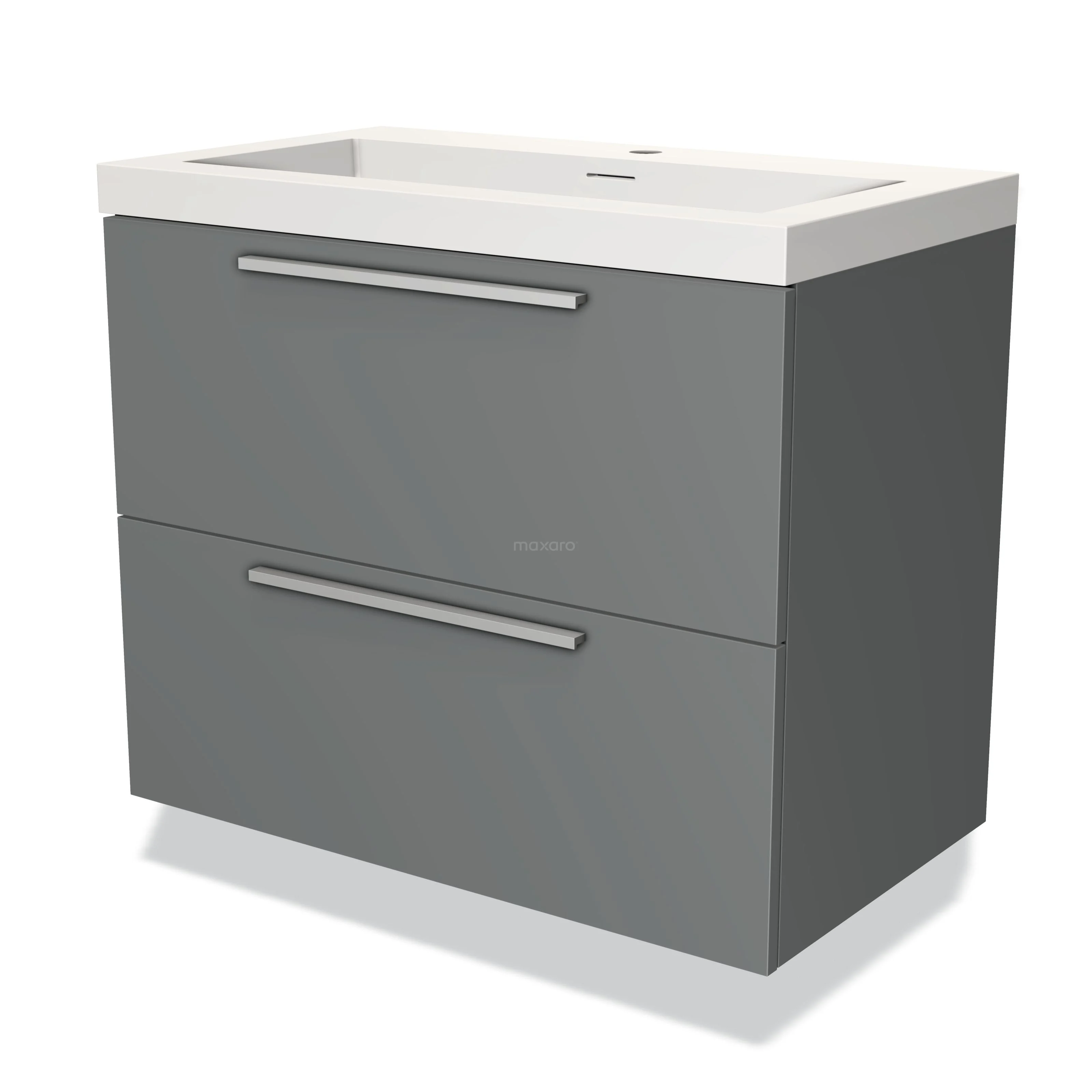 Modulo Waschtische | 80 cm Mittelgrau Flach front Solid Surface 2 übereinanderliegende Schubladen