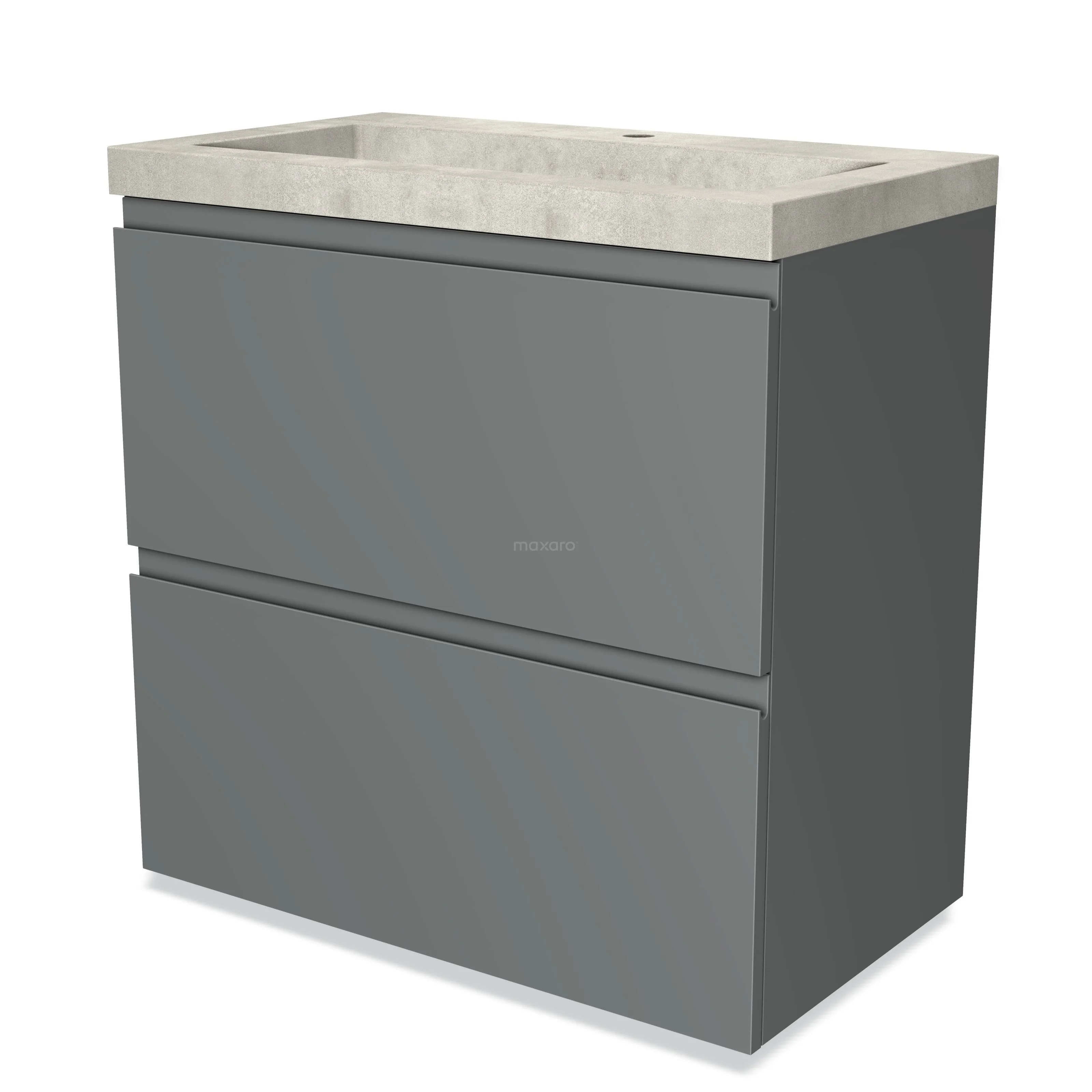 Modulo Waschtische | 80 cm Mittelgrau Grifflos front Beton 2 hohe Schubladen übereinanderliegend
