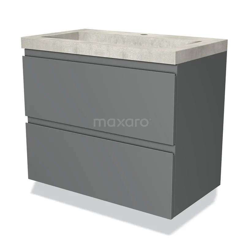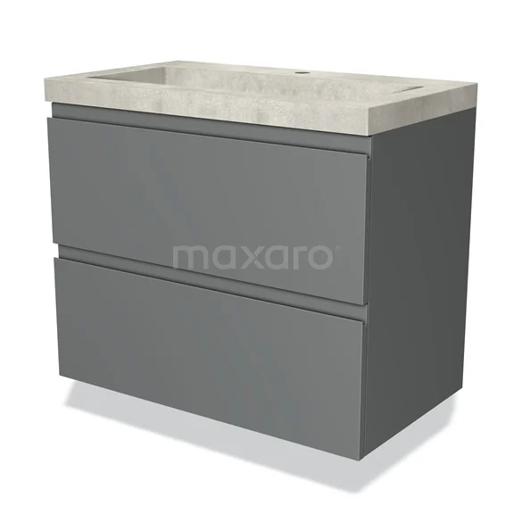 Modulo Waschtische | 80 cm Mittelgrau Grifflos front Beton 2 übereinanderliegende Schubladen