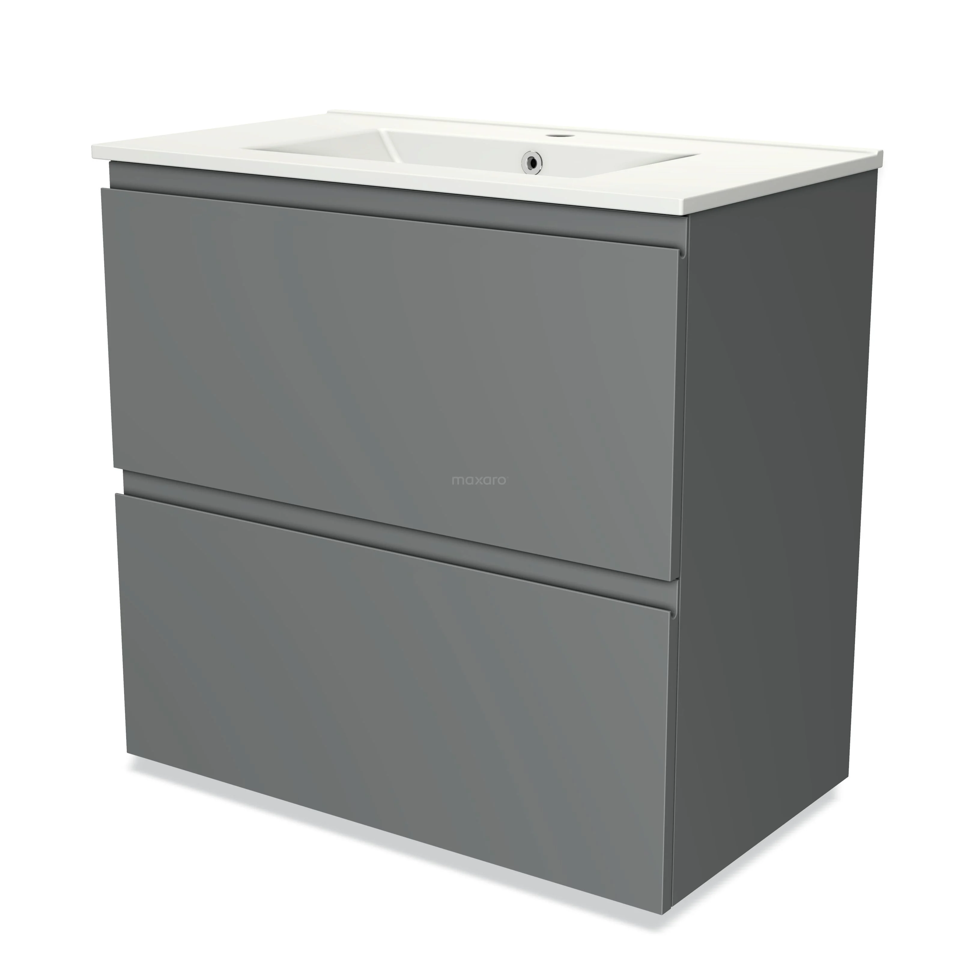 Modulo Waschtische | 80 cm Mittelgrau Grifflos front Keramik 2 hohe Schubladen übereinanderliegend