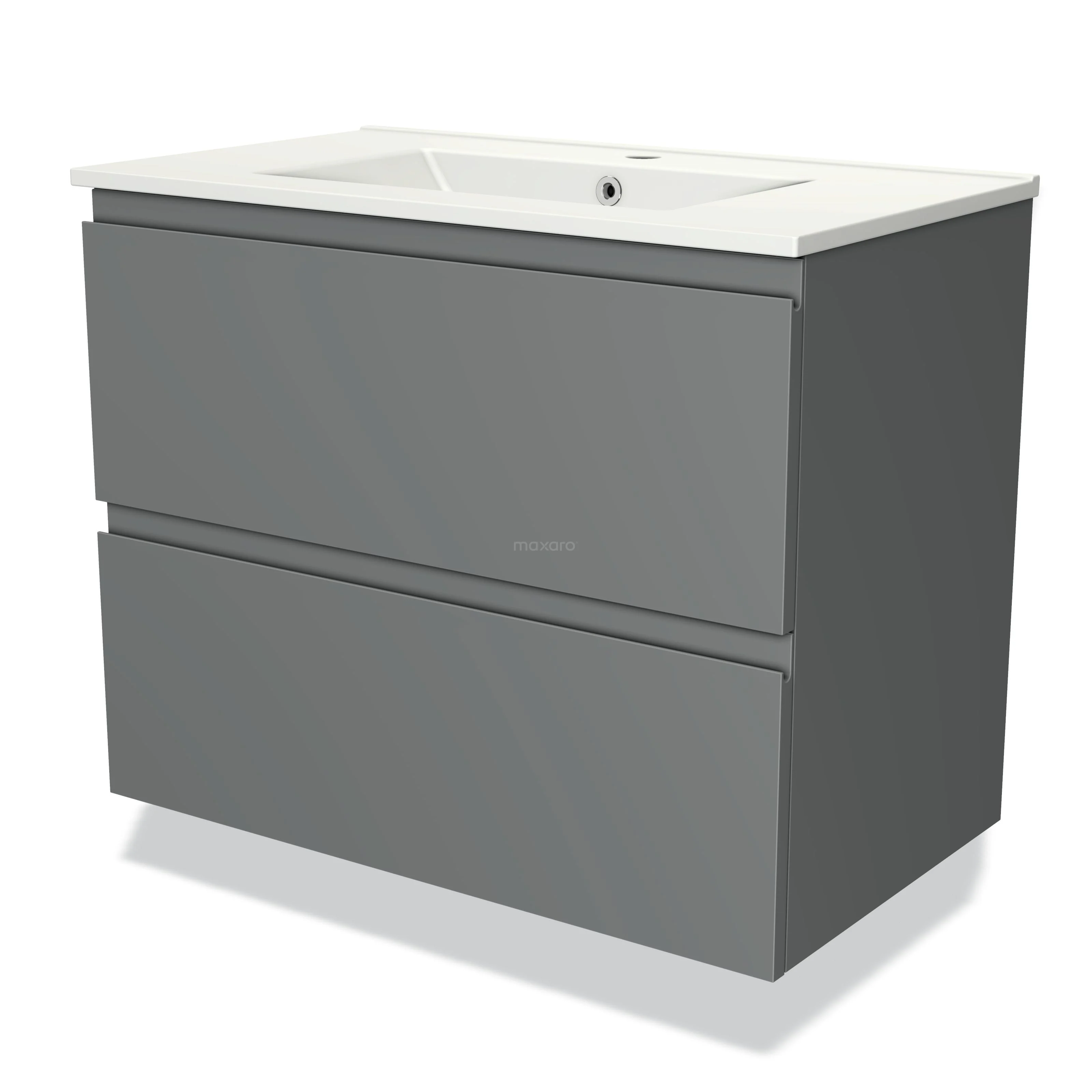 Modulo Waschtische | 80 cm Mittelgrau Grifflos front Keramik 2 übereinanderliegende Schubladen