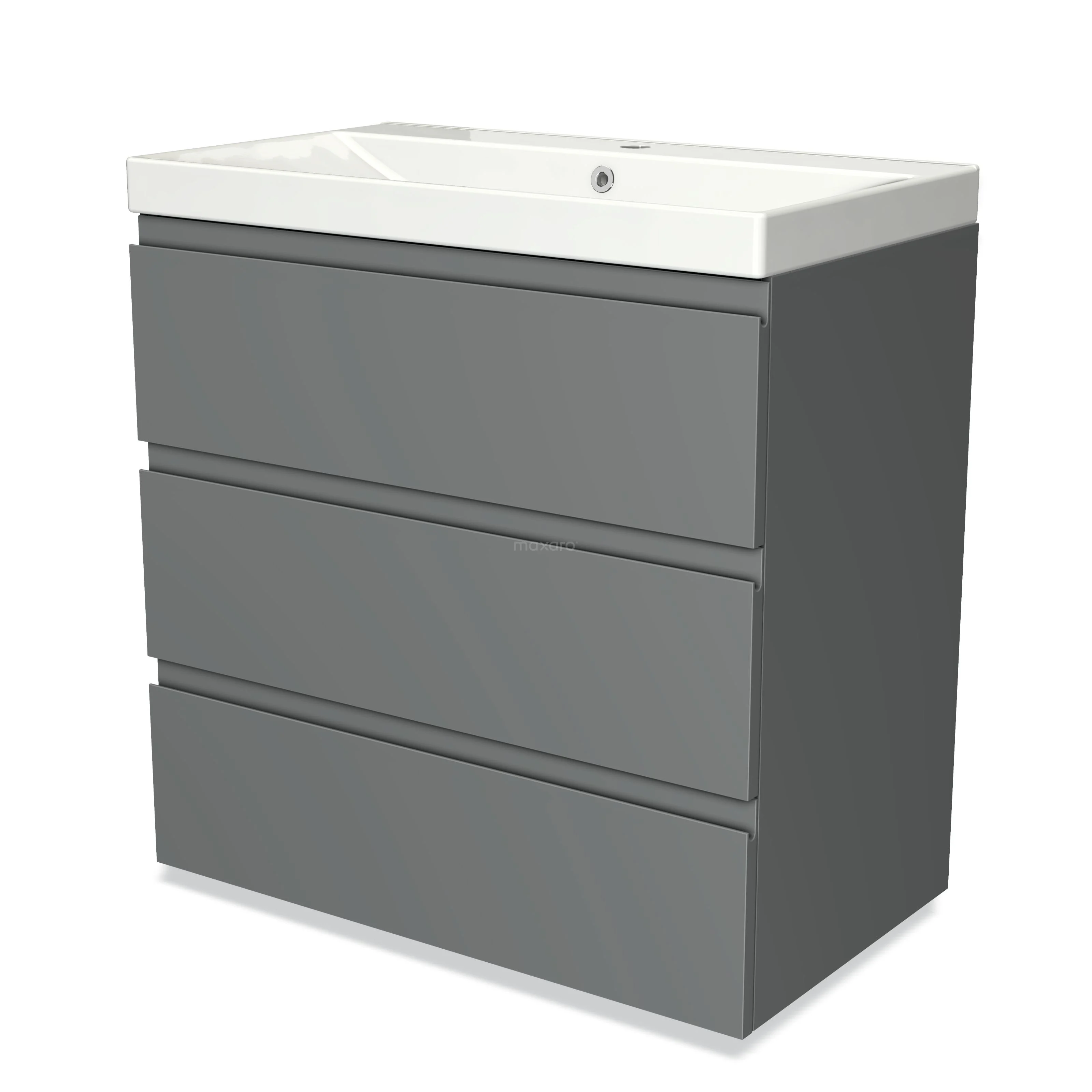 Modulo Waschtische | 80 cm Mittelgrau Grifflos front Keramik 3 Schubladen