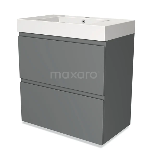 Modulo Waschtische | 80 cm Mittelgrau Grifflos front Mineralguss 2 hohe Schubladen übereinanderliegend