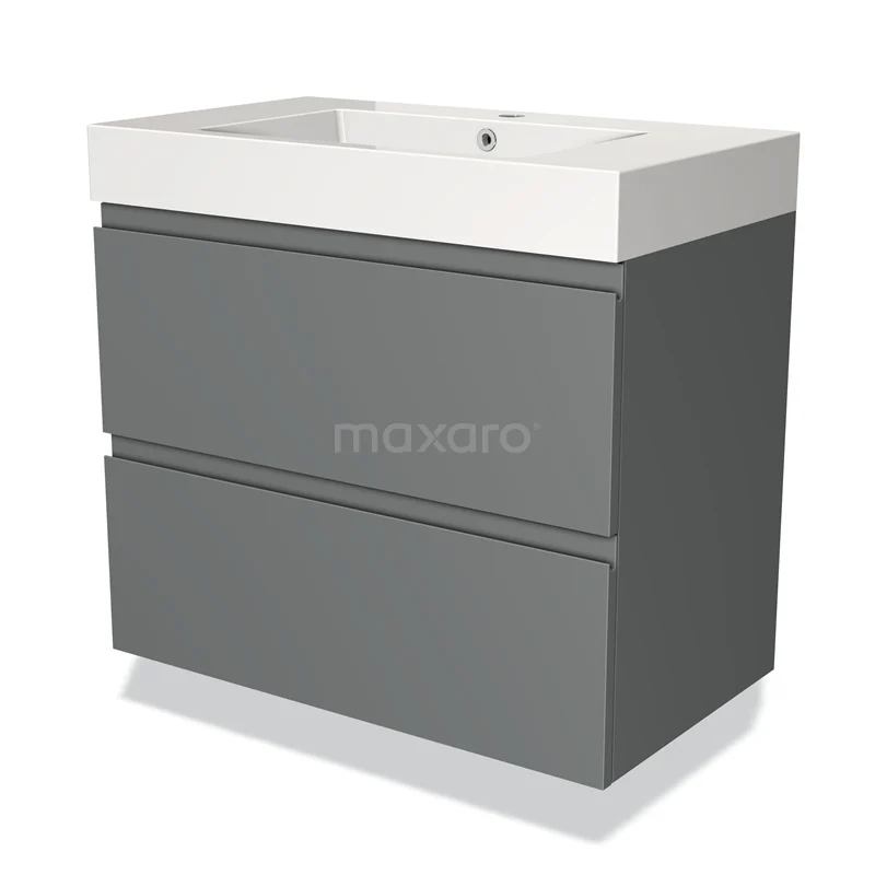 Modulo Waschtische | 80 cm Mittelgrau Grifflos front Mineralguss 2 übereinanderliegende Schubladen