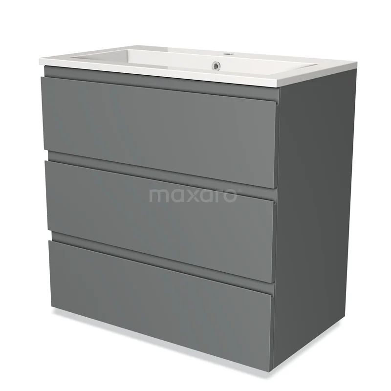 Modulo Waschtische | 80 cm Mittelgrau Grifflos front Mineralguss 3 Schubladen