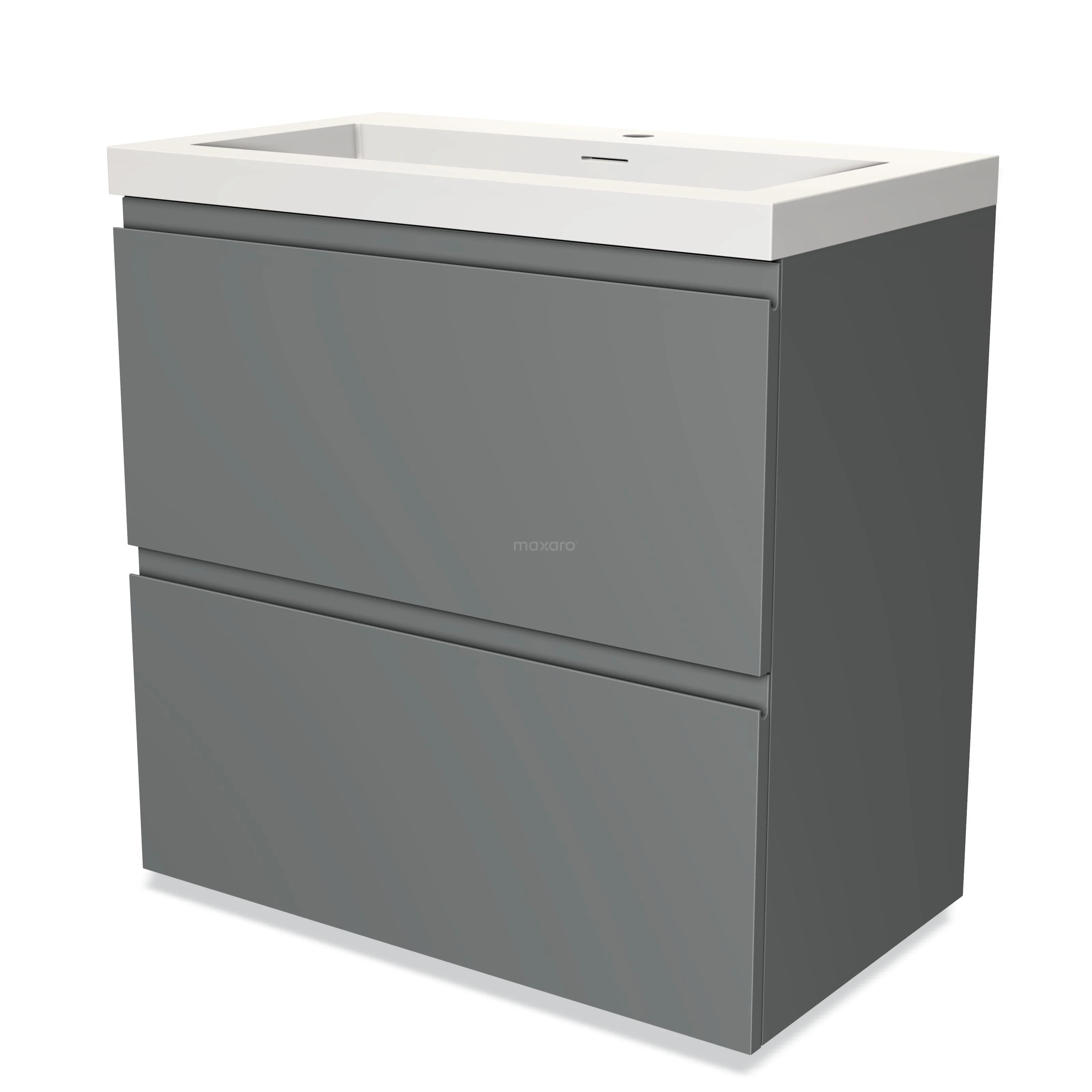 Modulo Waschtische | 80 cm Mittelgrau Grifflos front Solid Surface 2 hohe Schubladen übereinanderliegend