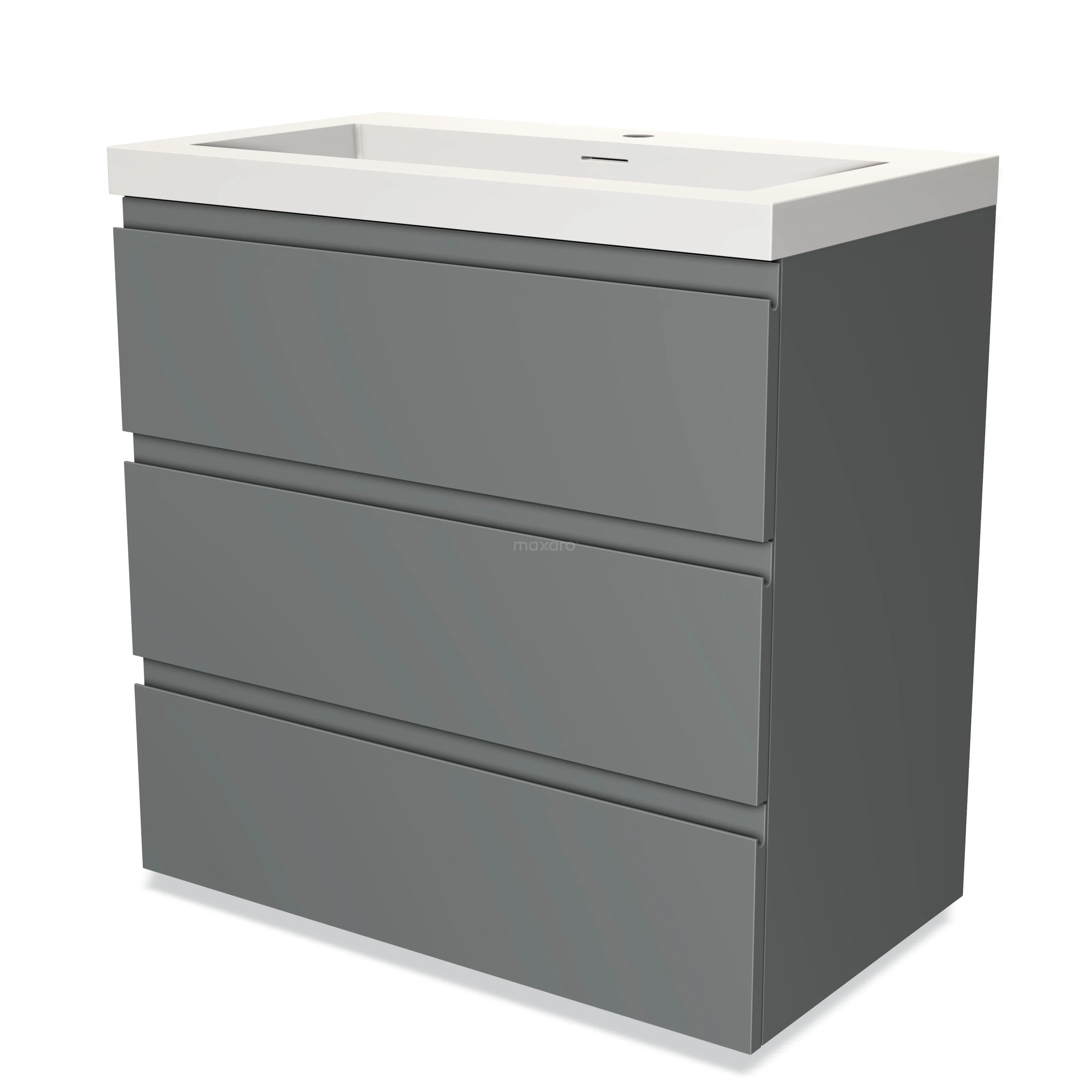 Modulo Waschtische | 80 cm Mittelgrau Grifflos front Solid Surface 3 Schubladen