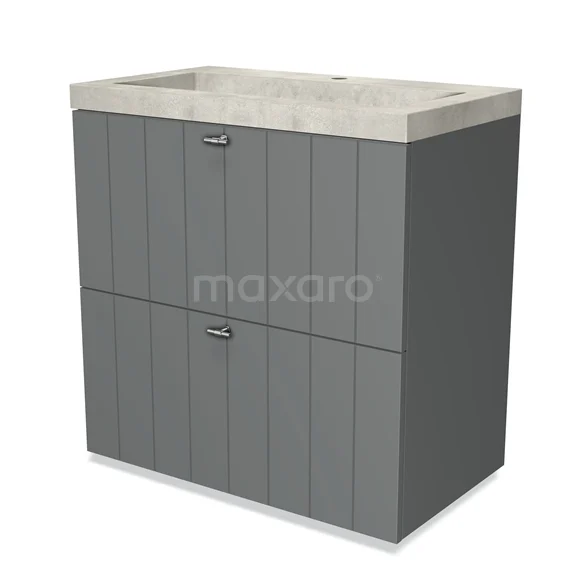 Modulo Waschtische | 80 cm Mittelgrau Lamelle front Beton 2 hohe Schubladen übereinanderliegend