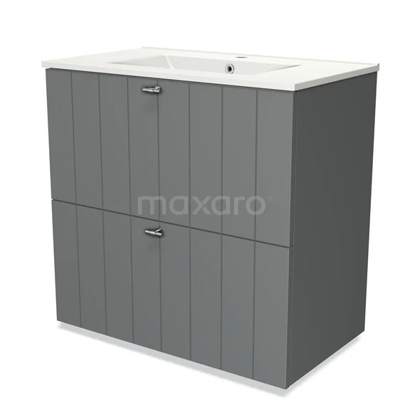 Modulo Waschtische | 80 cm Mittelgrau Lamelle front Keramik 2 hohe Schubladen übereinanderliegend