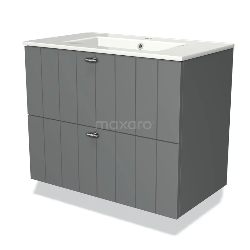 Modulo Waschtische | 80 cm Mittelgrau Lamelle front Keramik 2 übereinanderliegende Schubladen