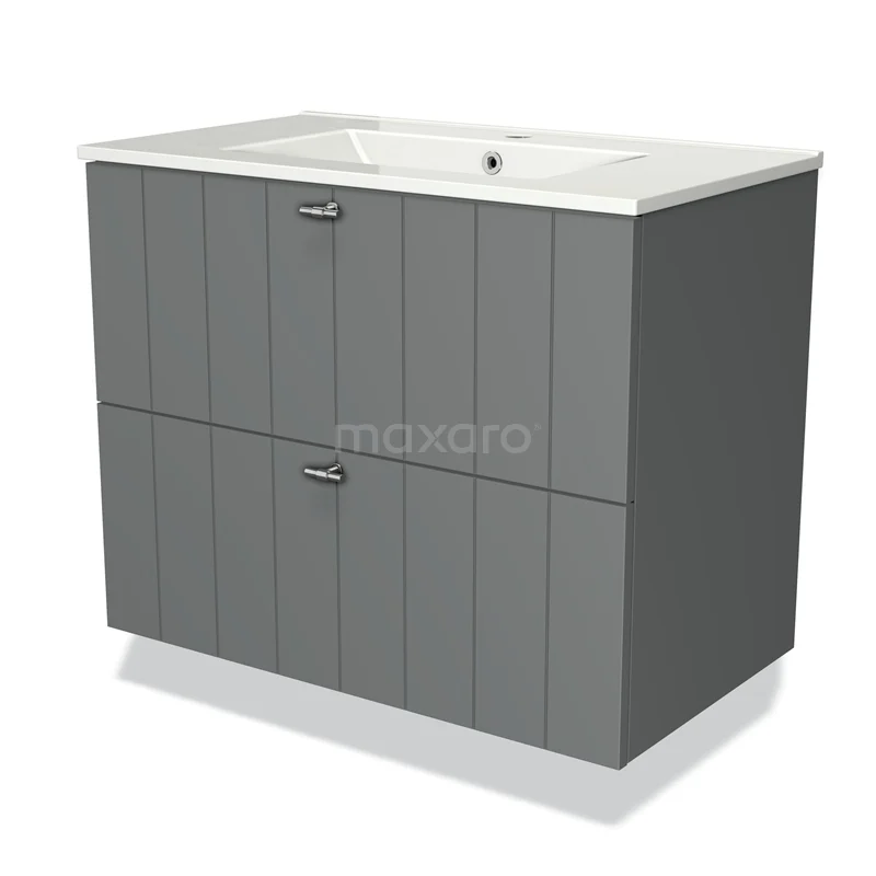 Modulo Waschtische | 80 cm Mittelgrau Lamelle front Keramik 2 übereinanderliegende Schubladen
