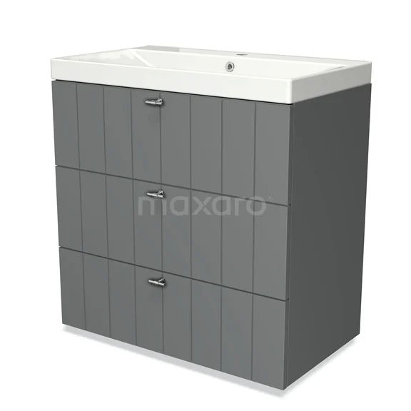 Modulo Waschtische | 80 cm Mittelgrau Lamelle front Keramik 3 Schubladen
