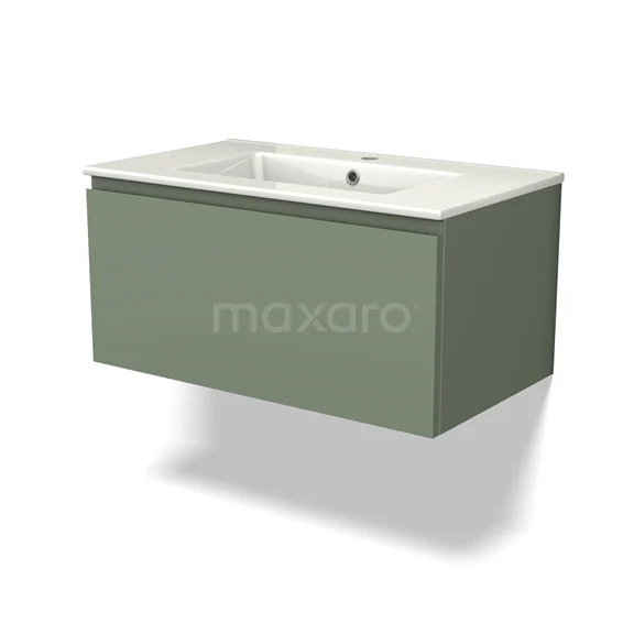 Modulo Waschtische | 80 cm Salbeigrün Grifflos front Keramik 1 Schublade