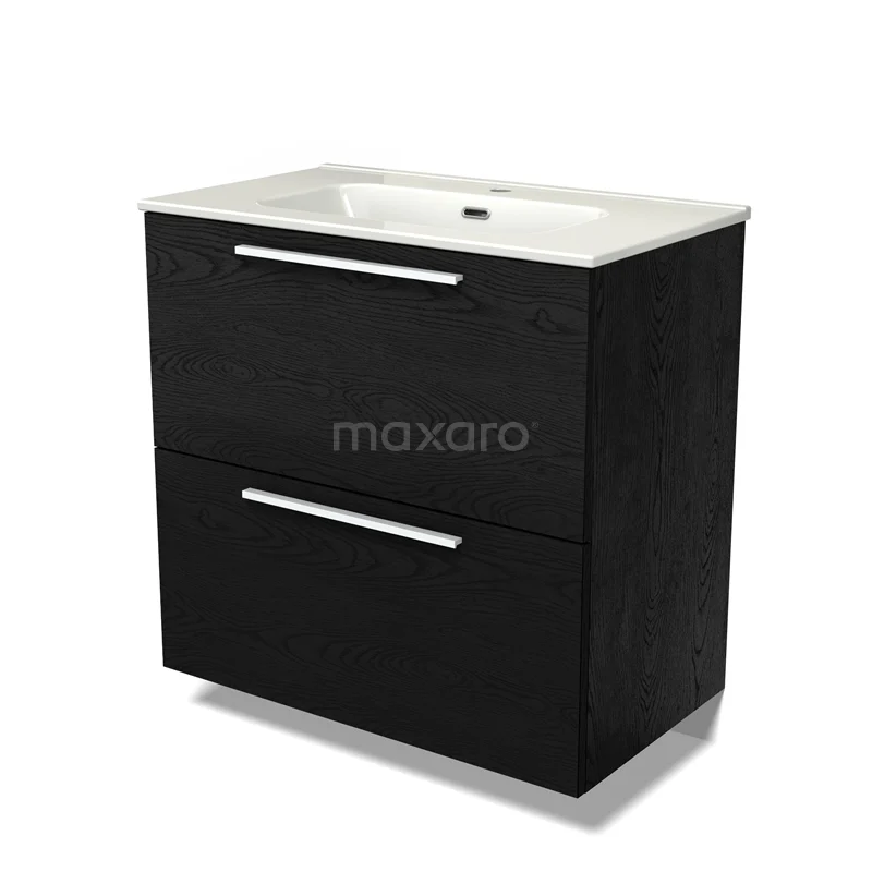 Modulo Waschtische | 80 cm Schwarze Eiche Flach front Keramik 2 hohe Schubladen übereinanderliegend