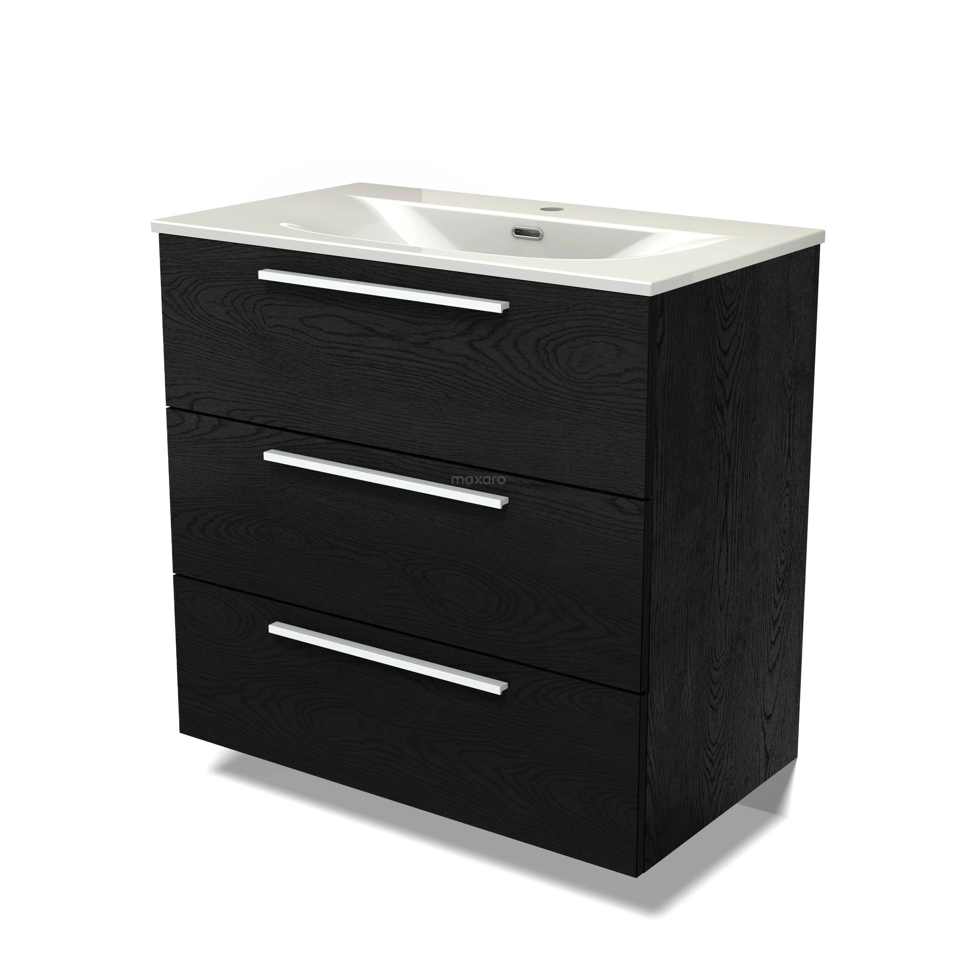 Modulo Waschtische | 80 cm Schwarze Eiche Flach front Keramik 3 Schubladen