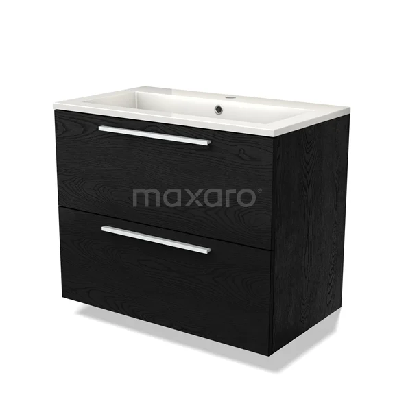 Modulo Waschtische | 80 cm Schwarze Eiche Flach front Mineralguss 2 übereinanderliegende Schubladen