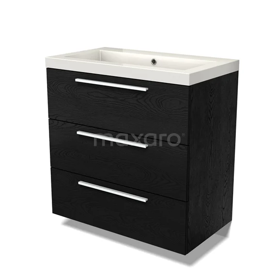 Modulo Waschtische | 80 cm Schwarze Eiche Flach front Mineralguss 3 Schubladen