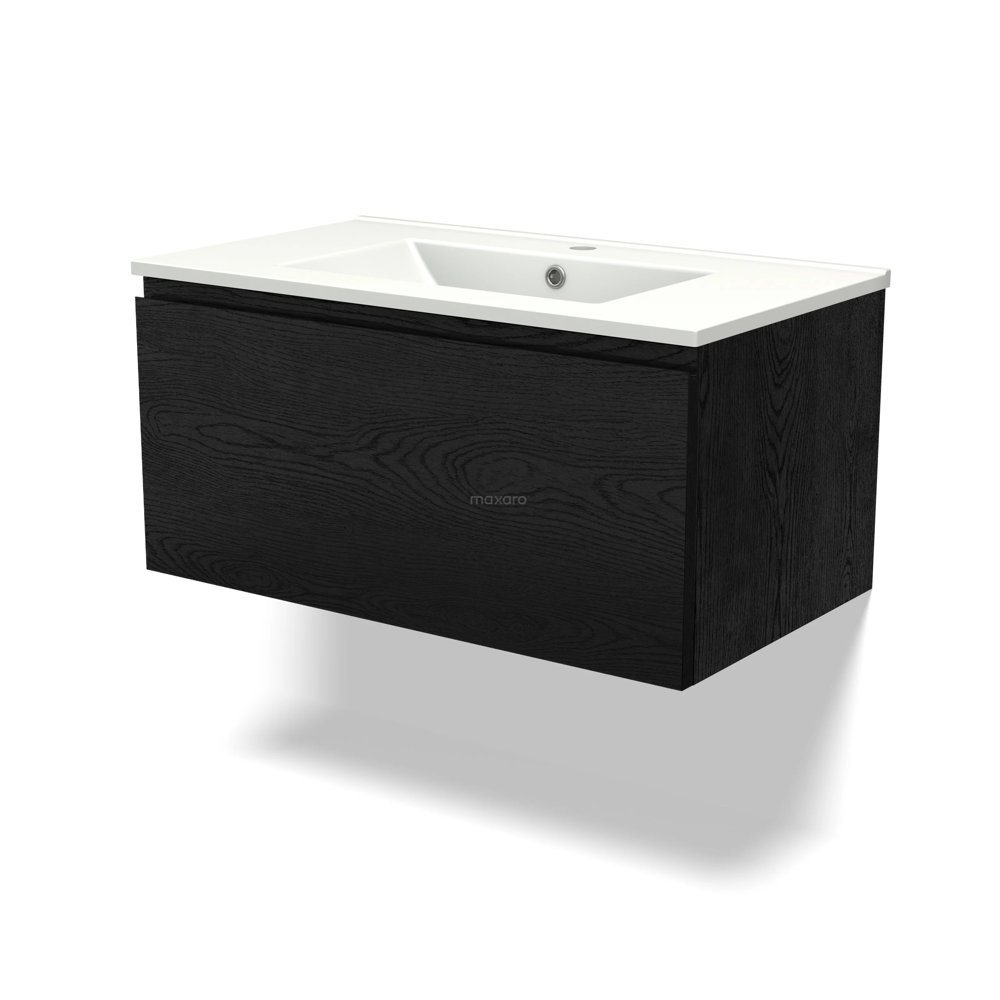 Modulo Waschtische | 80 cm Schwarze Eiche Grifflos front Keramik 1 Schublade