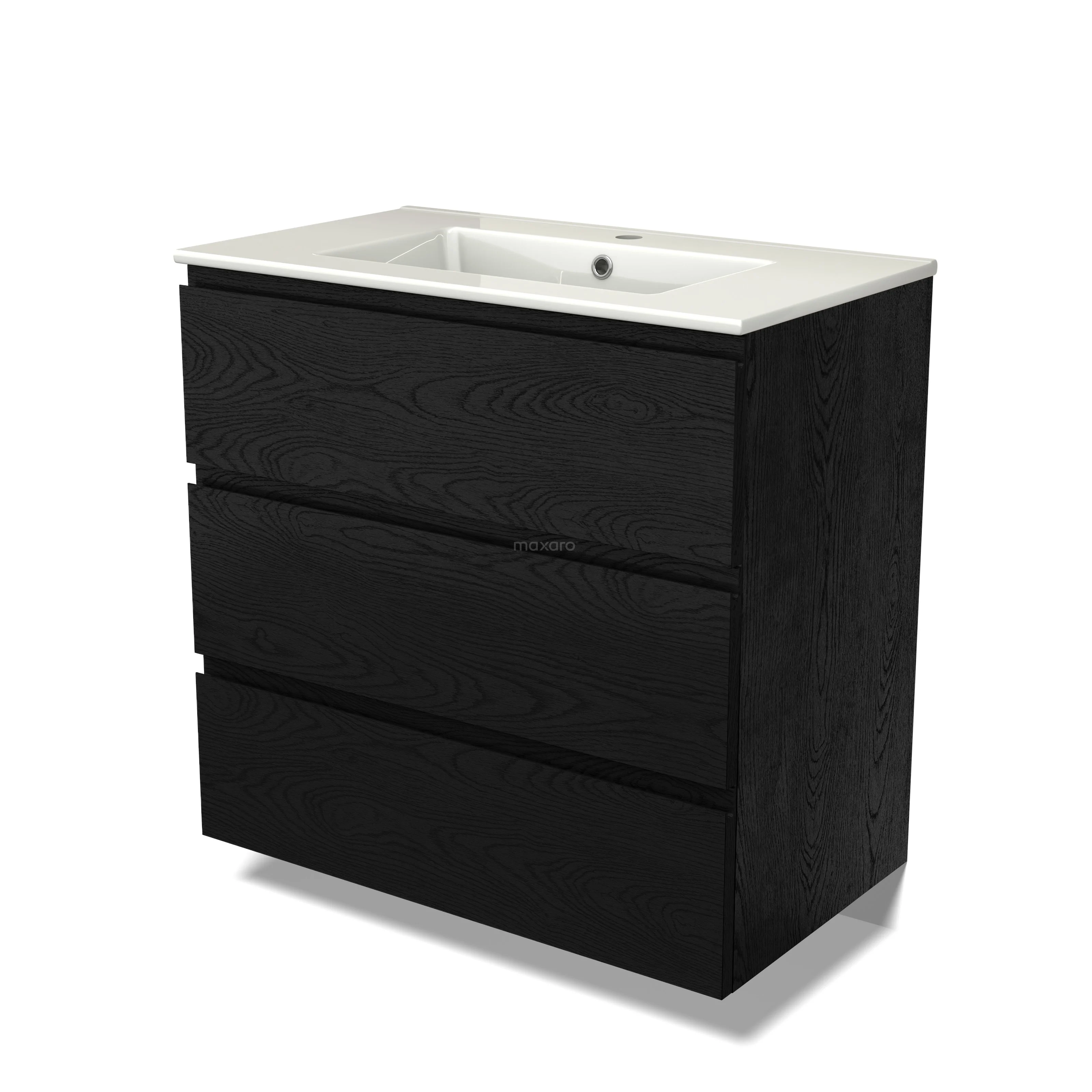 Modulo Waschtische | 80 cm Schwarze Eiche Grifflos front Keramik 3 Schubladen