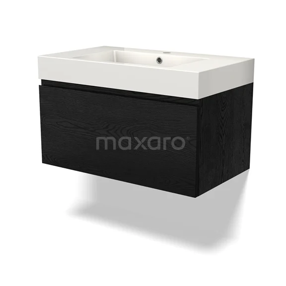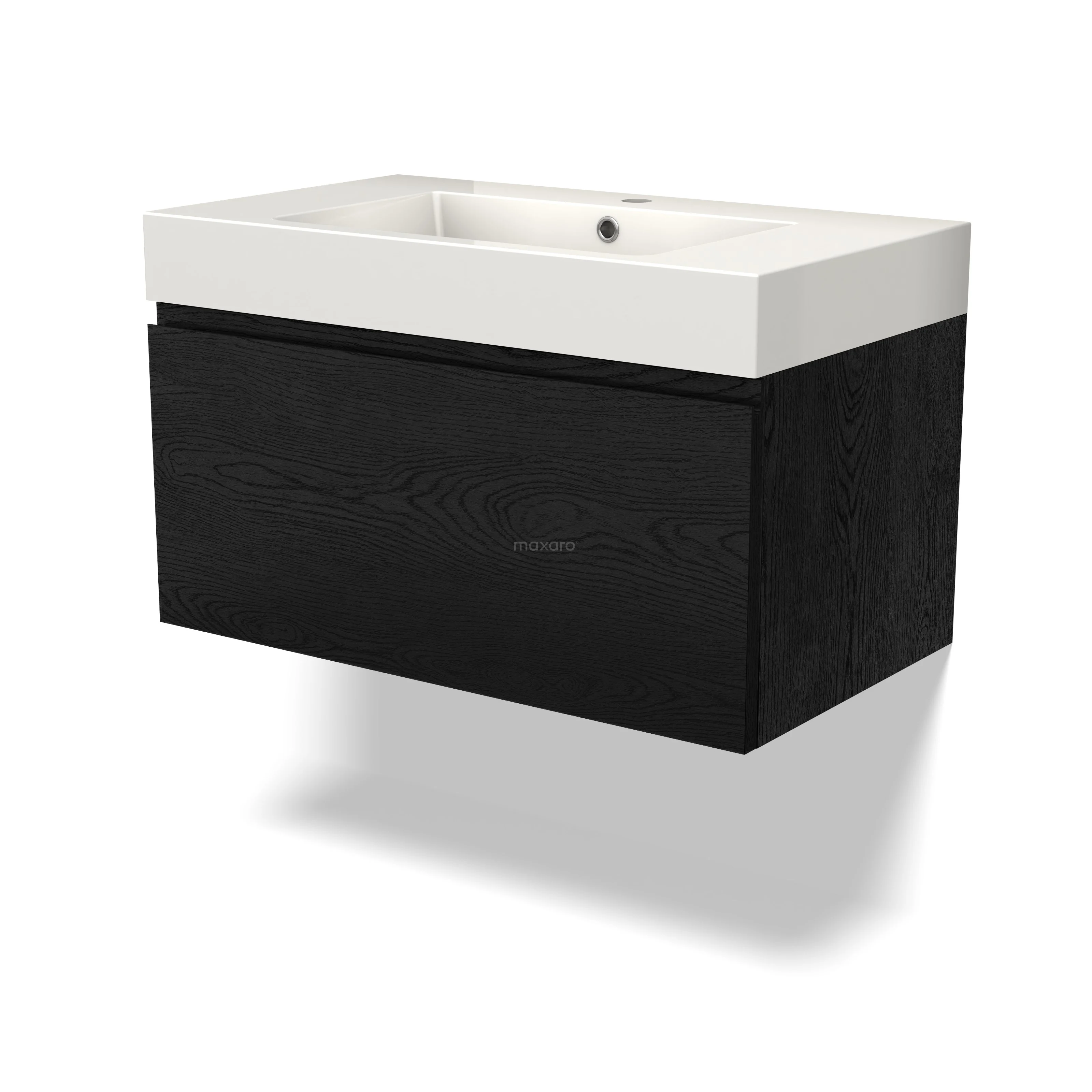 Modulo Waschtische | 80 cm Schwarze Eiche Grifflos front Mineralguss 1 Schublade