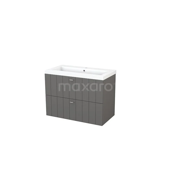 Modulo+ Waschtische | 90 cm Basalt Lamelle front Mineralguss 2 übereinanderliegende Schubladen