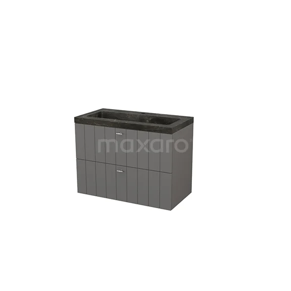 Modulo+ Waschtische | 90 cm Basalt Lamelle front Naturstein 2 übereinanderliegende Schubladen