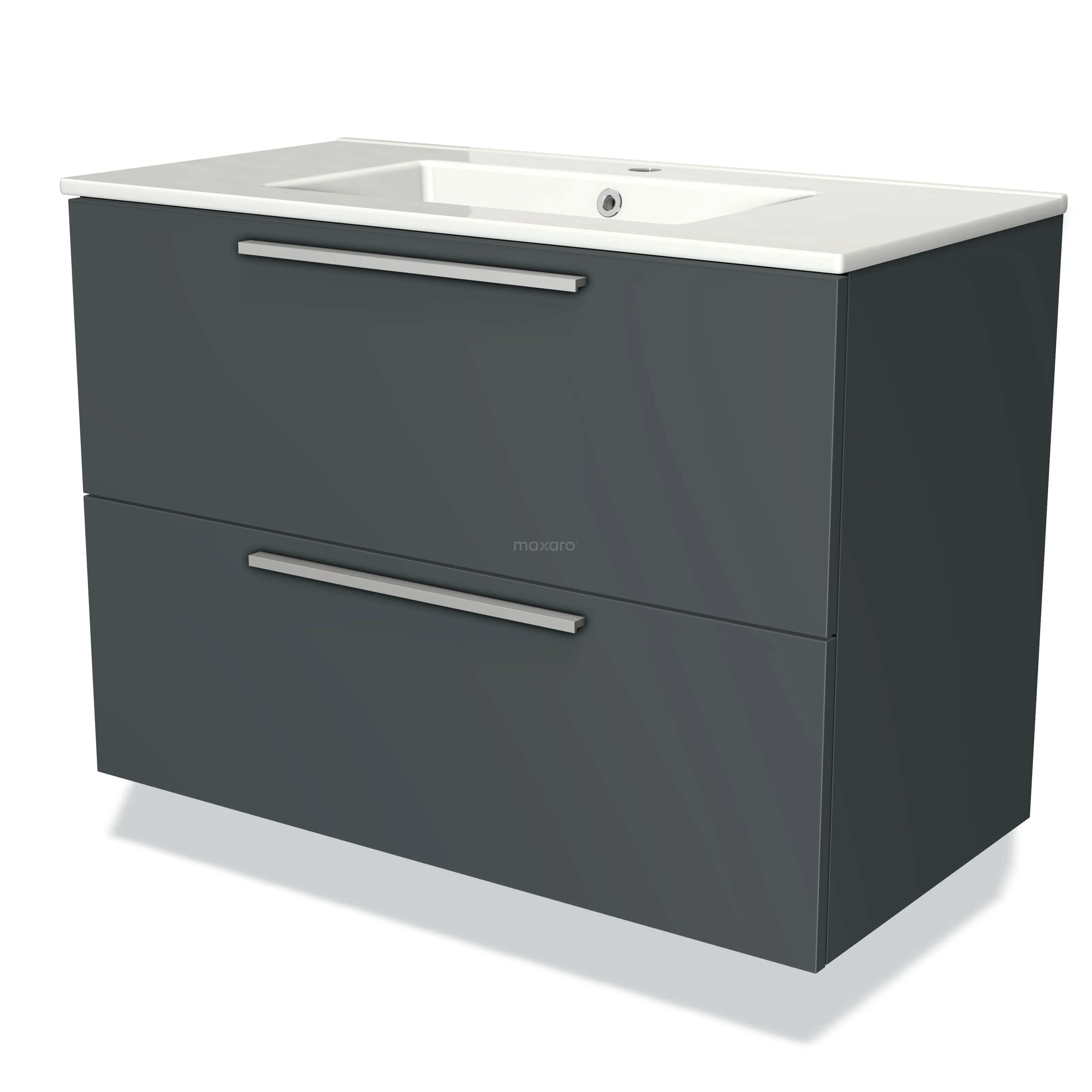Modulo Waschtische | 90 cm Dunkelgrau Flach front Keramik 2 übereinanderliegende Schubladen