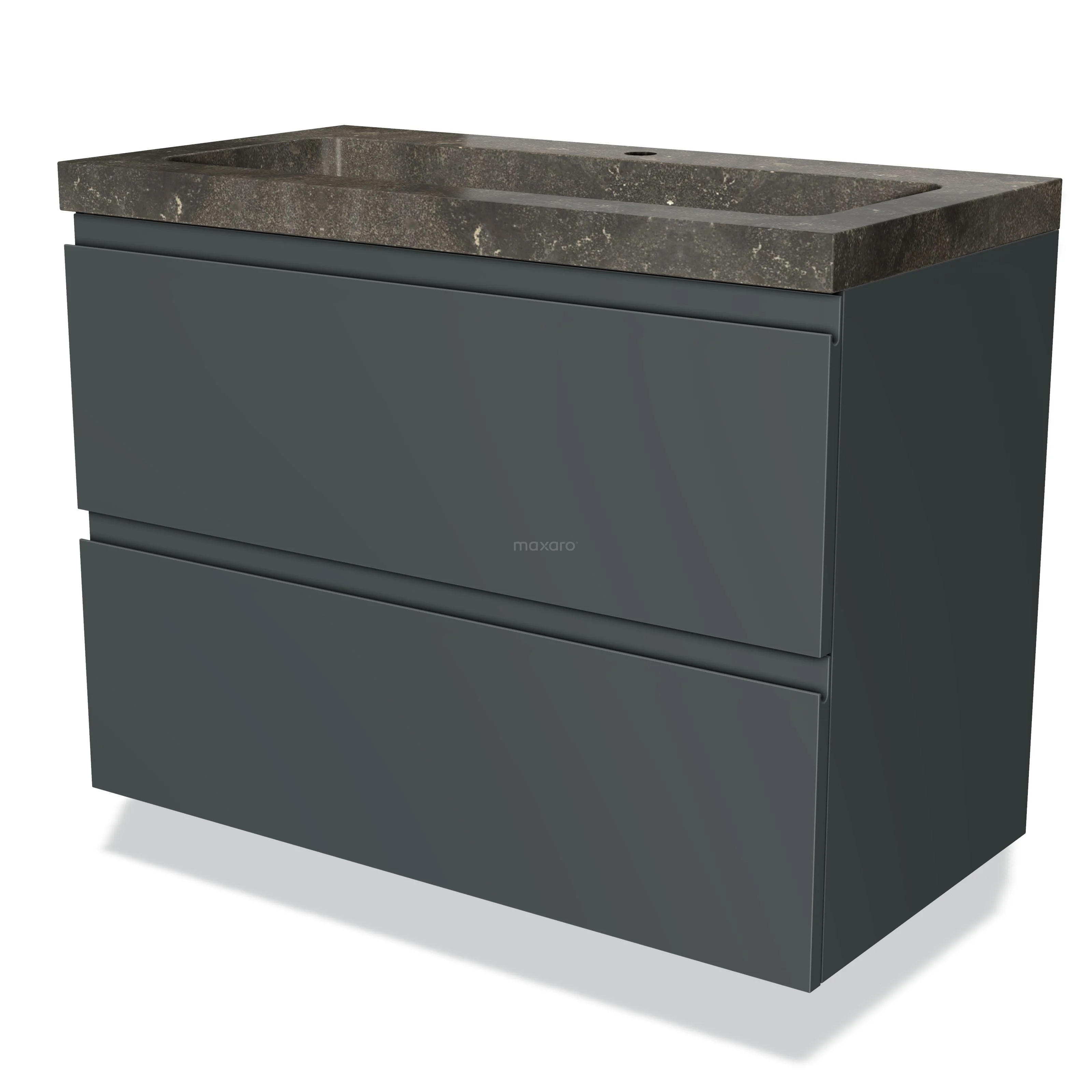Modulo Waschtische | 90 cm Dunkelgrau Grifflos front Naturstein 2 übereinanderliegende Schubladen