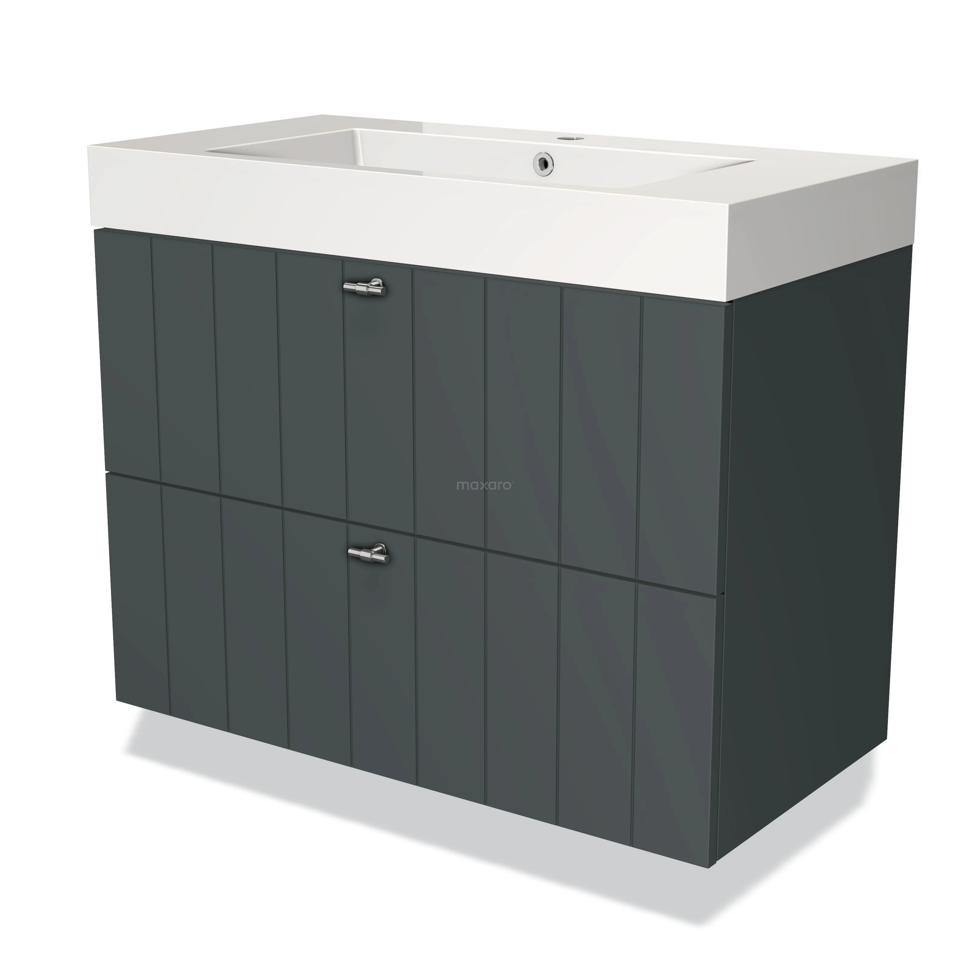 Modulo Waschtische | 90 cm Dunkelgrau Lamelle front Mineralguss 2 übereinanderliegende Schubladen