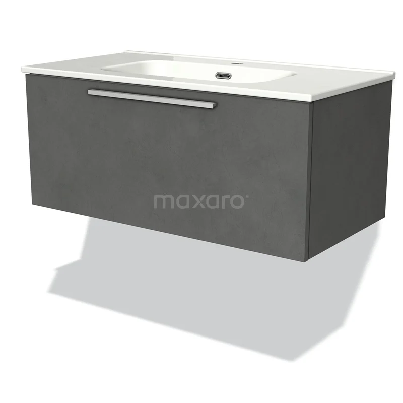 Modulo Waschtische | 90 cm Dunkelgrauer Beton Flach front Keramik 1 Schublade