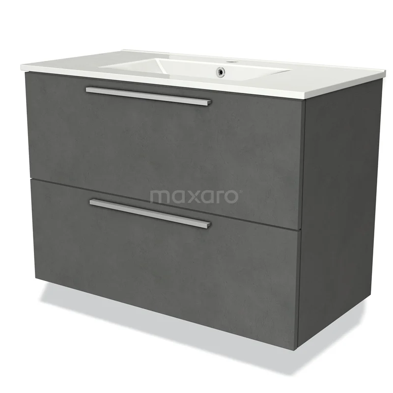 Modulo Waschtische | 90 cm Dunkelgrauer Beton Flach front Keramik 2 übereinanderliegende Schubladen
