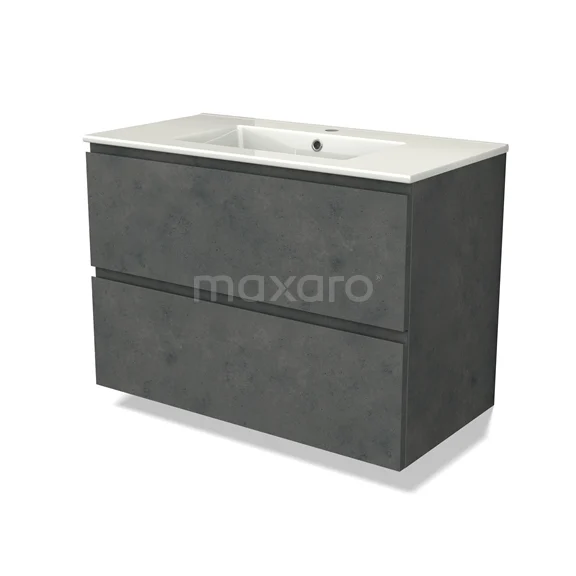 Modulo Waschtische | 90 cm Dunkelgrauer Beton Grifflos front Keramik 2 übereinanderliegende Schubladen