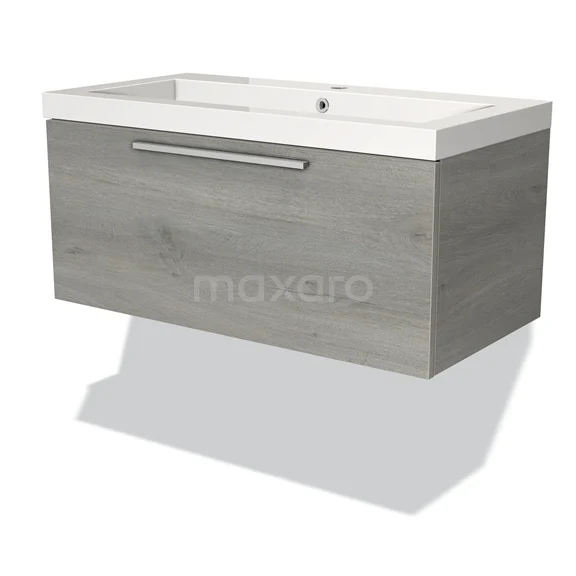 Modulo Waschtische | 90 cm Graue Eiche Flach front Mineralguss 1 Schublade