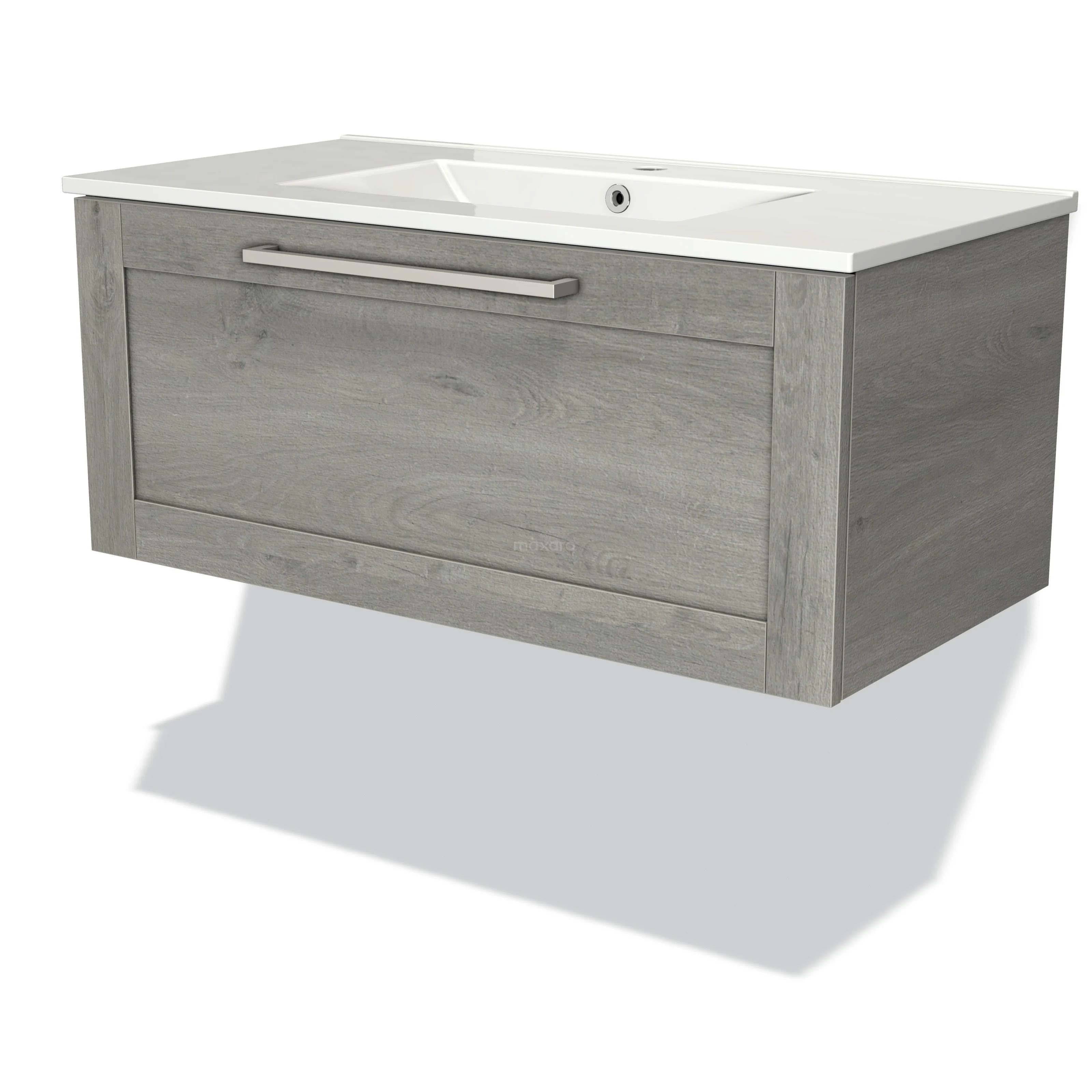 Modulo Waschtische | 90 cm Graue Eiche Rahmen front Keramik 1 Schublade