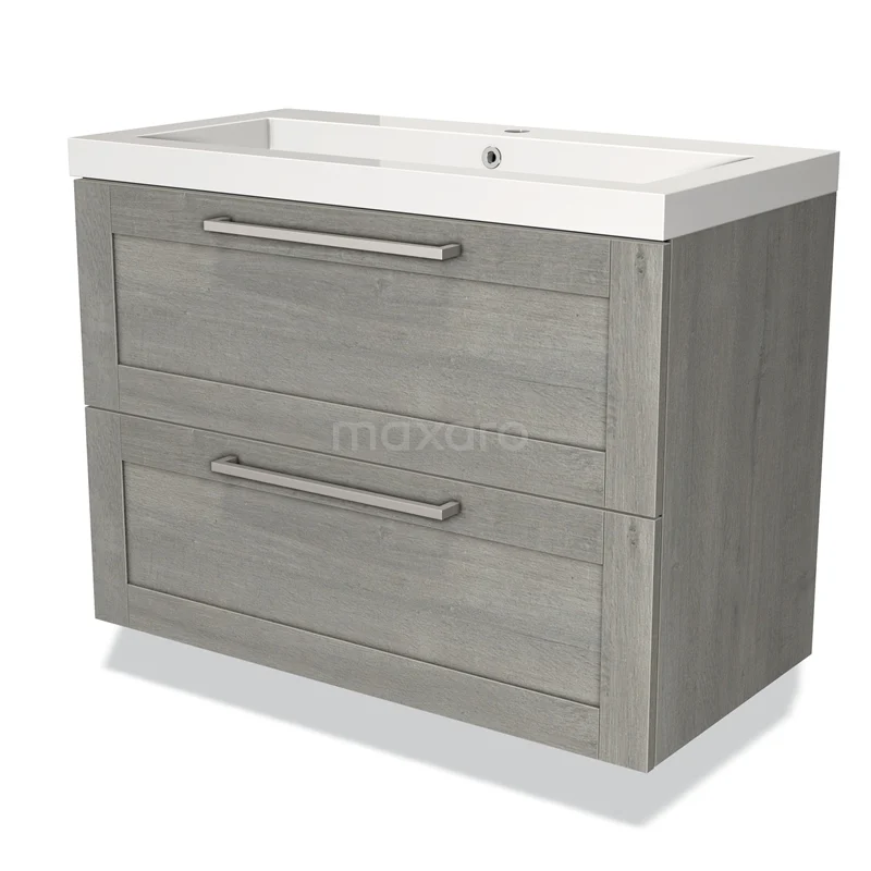 Modulo Waschtische | 90 cm Graue Eiche Rahmen front Mineralguss 2 übereinanderliegende Schubladen