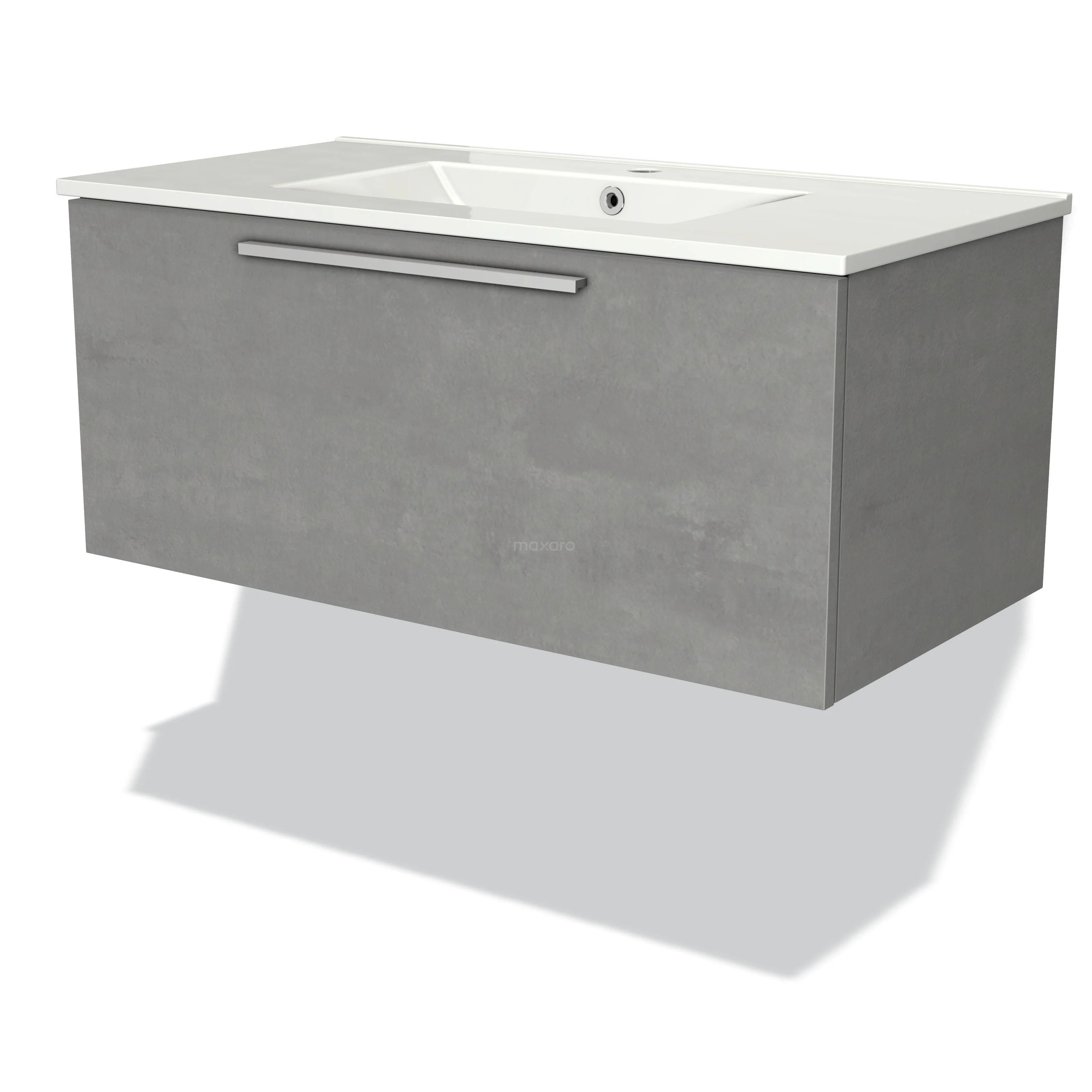 Modulo Waschtische | 90 cm Hellgrauer Beton Flach front Keramik 1 Schublade