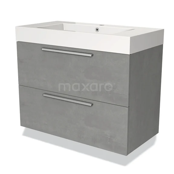 Modulo Waschtische | 90 cm Hellgrauer Beton Flach front Mineralguss 2 übereinanderliegende Schubladen