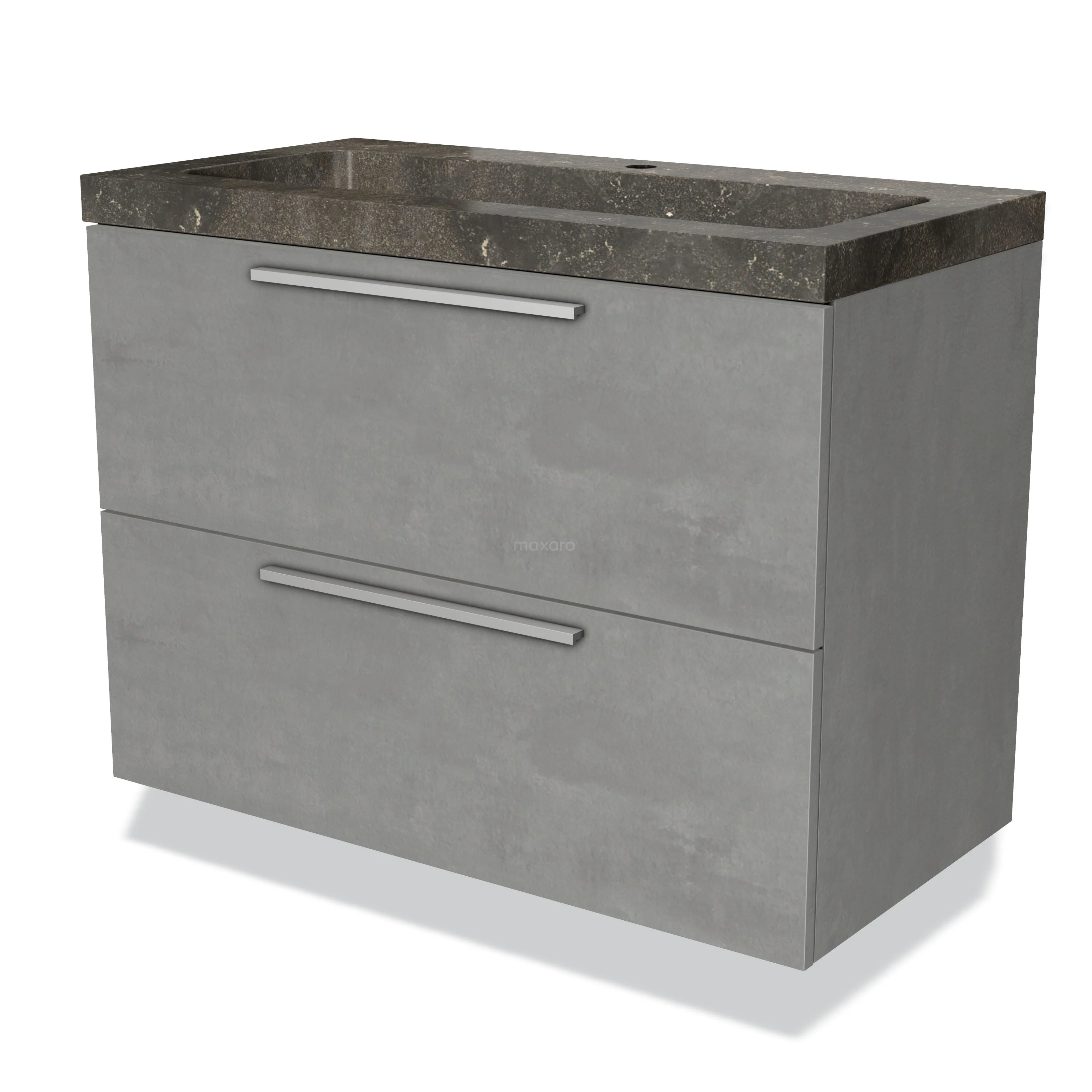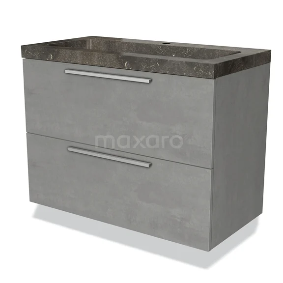 Modulo Waschtische | 90 cm Hellgrauer Beton Flach front Naturstein 2 übereinanderliegende Schubladen