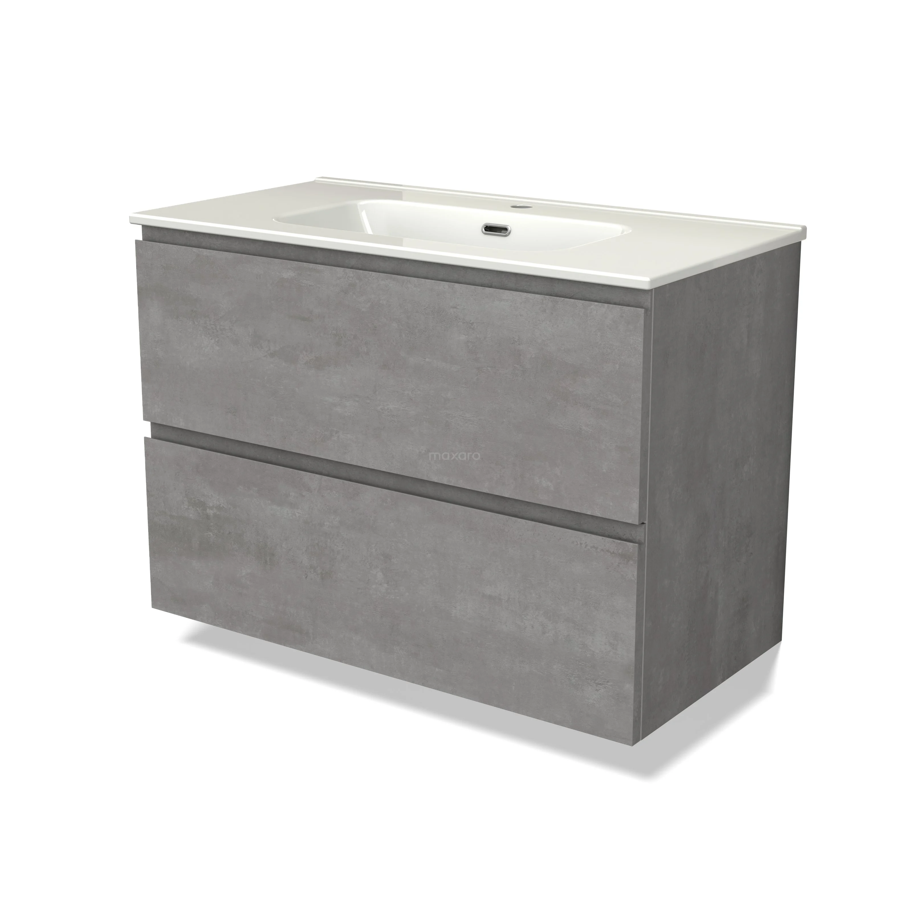 Modulo Waschtische | 90 cm Hellgrauer Beton Grifflos front Keramik 2 übereinanderliegende Schubladen