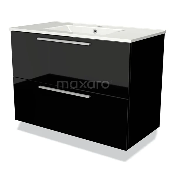 Modulo Waschtische | 90 cm Hochglanz Schwarz Flach front Keramik 2 übereinanderliegende Schubladen