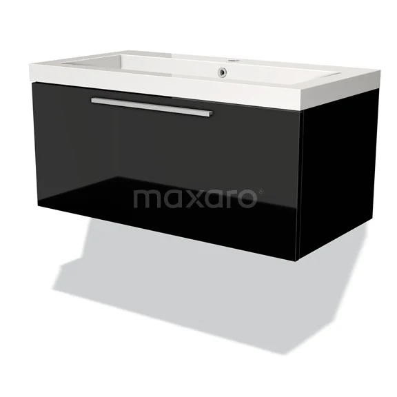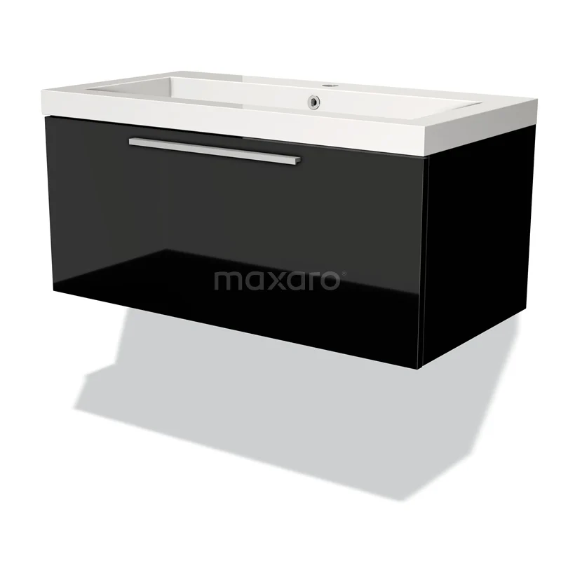 Modulo Waschtische | 90 cm Hochglanz Schwarz Flach front Mineralguss 1 Schublade