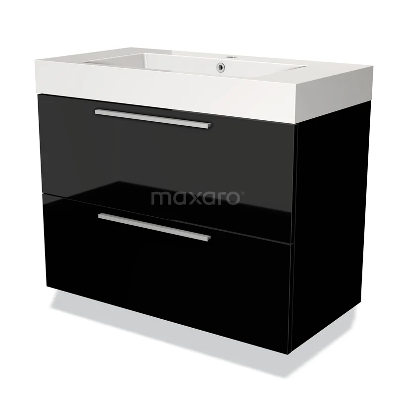 Modulo Waschtische | 90 cm Hochglanz Schwarz Flach front Mineralguss 2 übereinanderliegende Schubladen