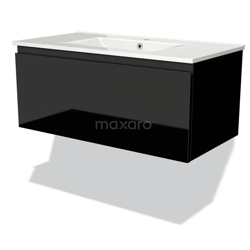 Modulo Waschtische | 90 cm Hochglanz Schwarz Grifflos front Keramik 1 Schublade