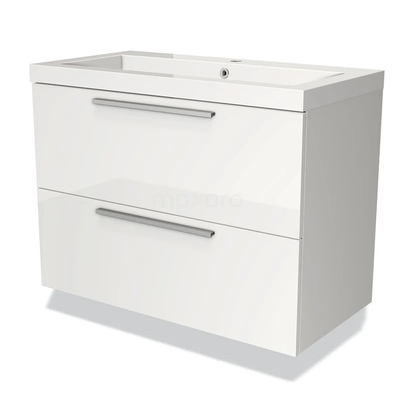 Modulo Waschtische | 90 cm Hochglanz Weiß Flach front Mineralguss 2 übereinanderliegende Schubladen