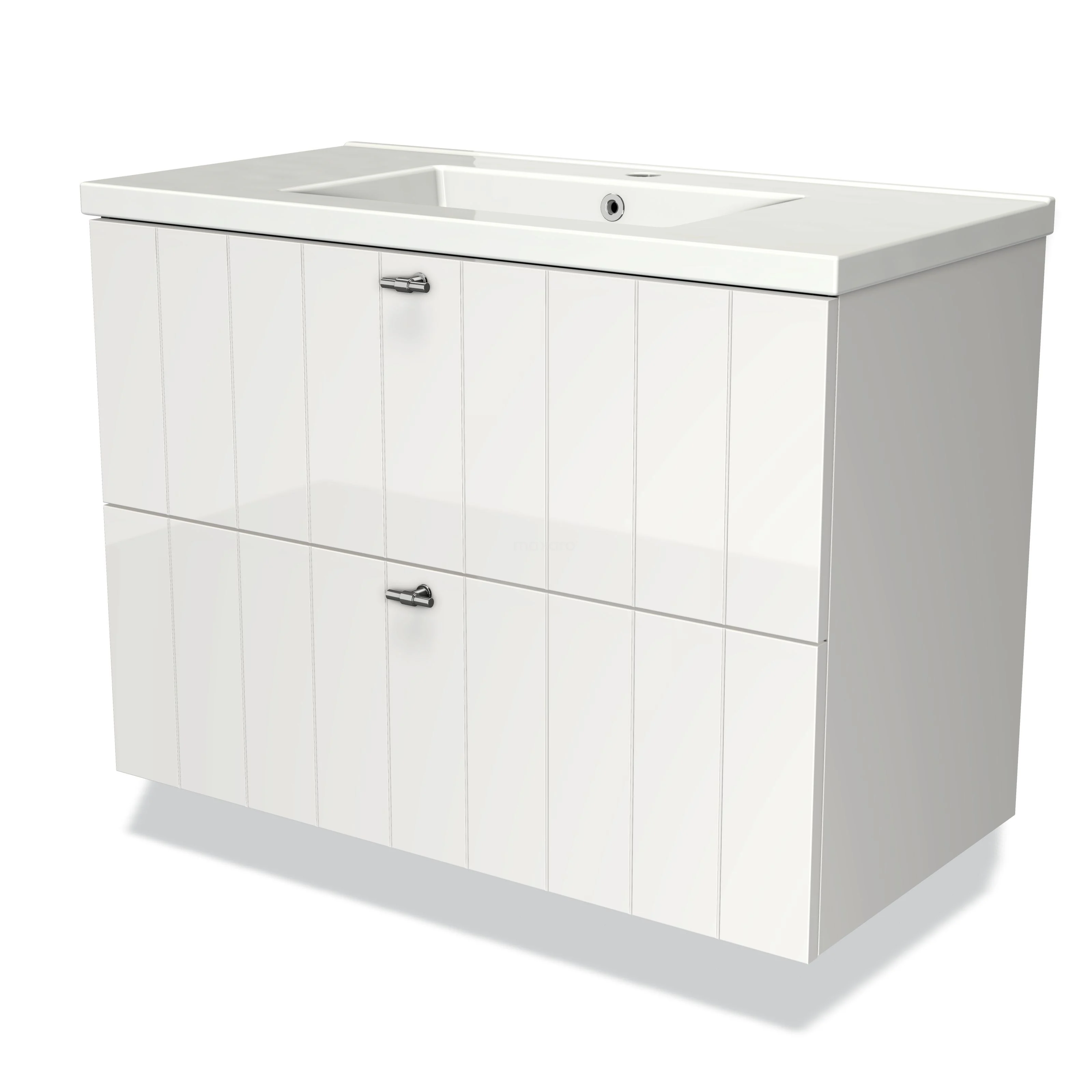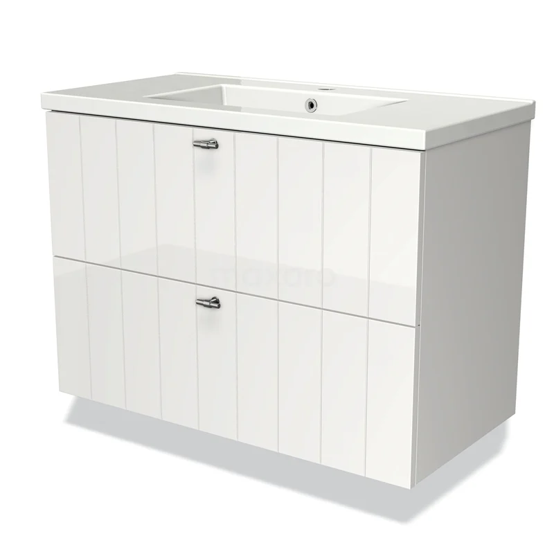 Modulo Waschtische | 90 cm Hochglanz Weiß Lamelle front Keramik 2 übereinanderliegende Schubladen