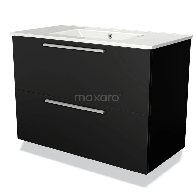 Modulo Waschtische | 90 cm Matt Schwarz Flach front Keramik 2 übereinanderliegende Schubladen