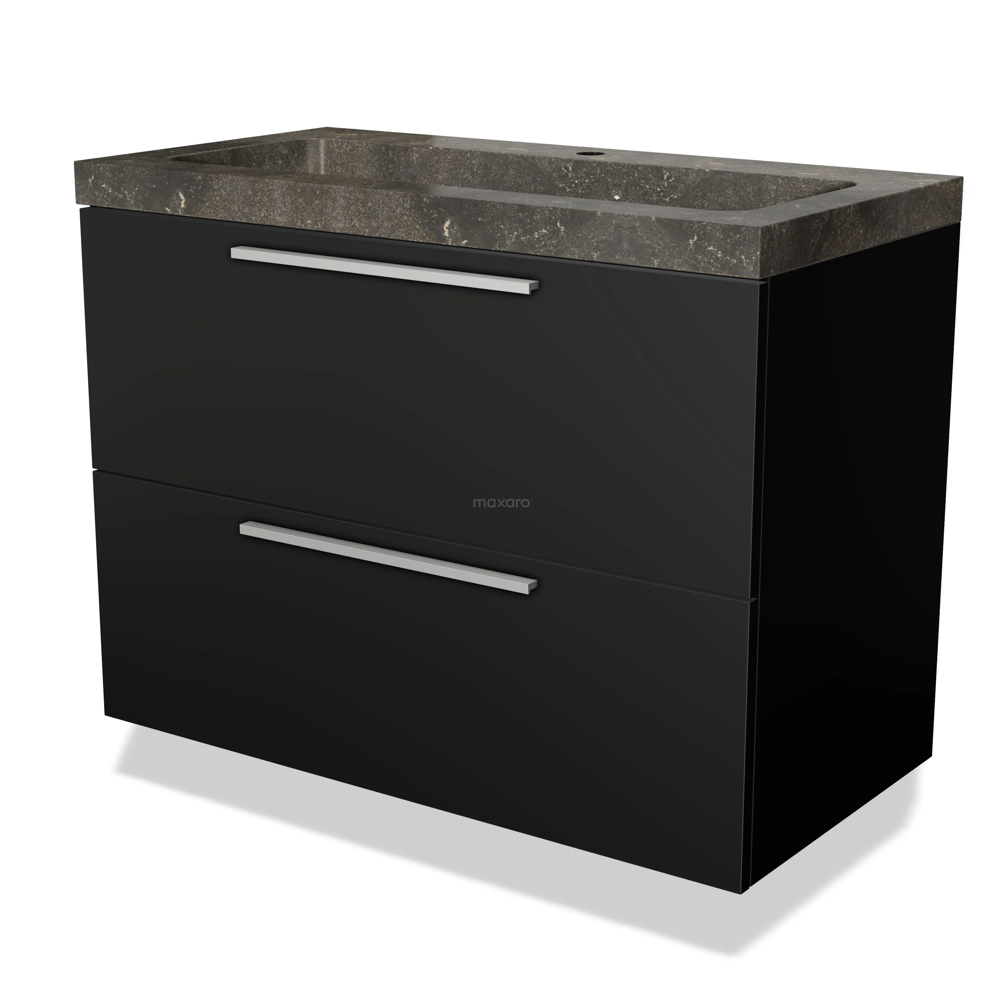 Modulo Waschtische | 90 cm Matt Schwarz Flach front Naturstein 2 übereinanderliegende Schubladen